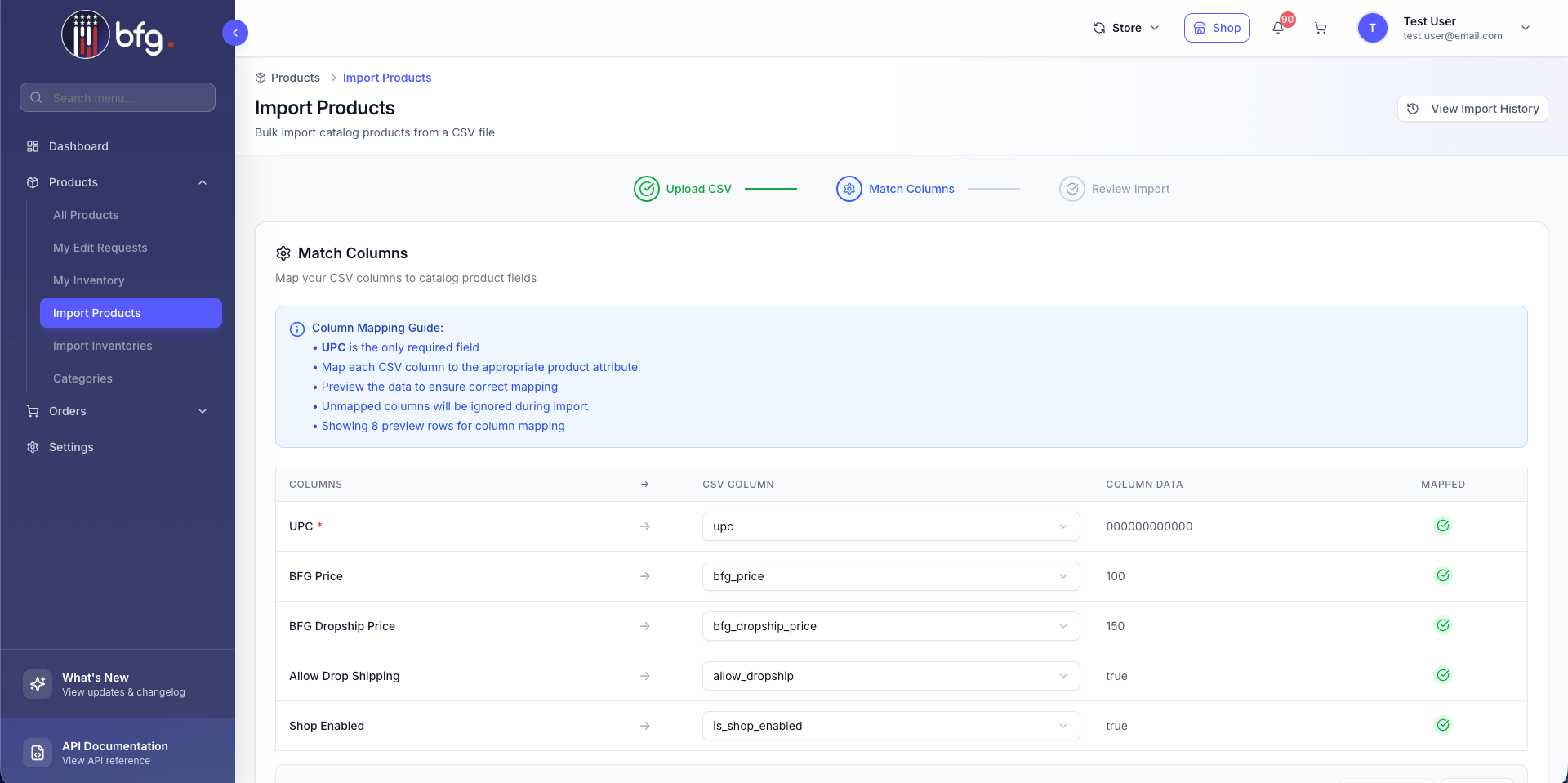 Retailers can import products into their own catalog, enabling bulk updates and efficient product management.