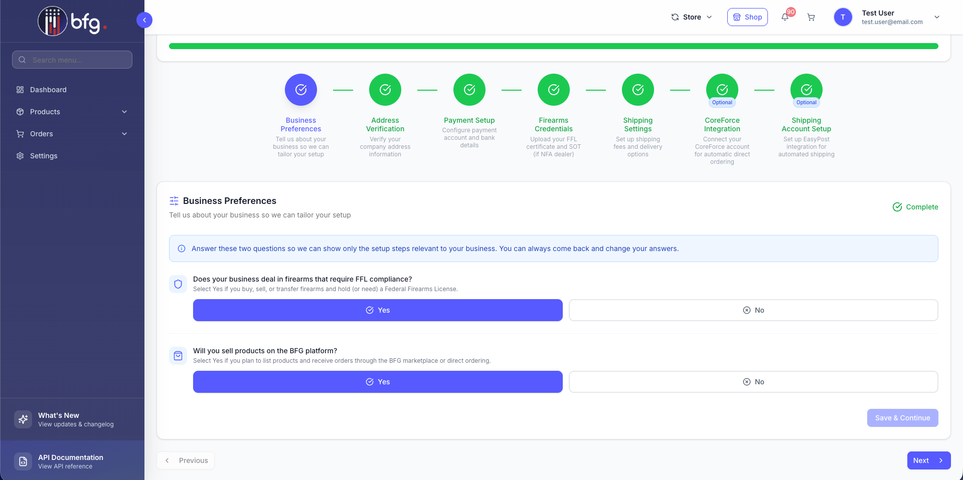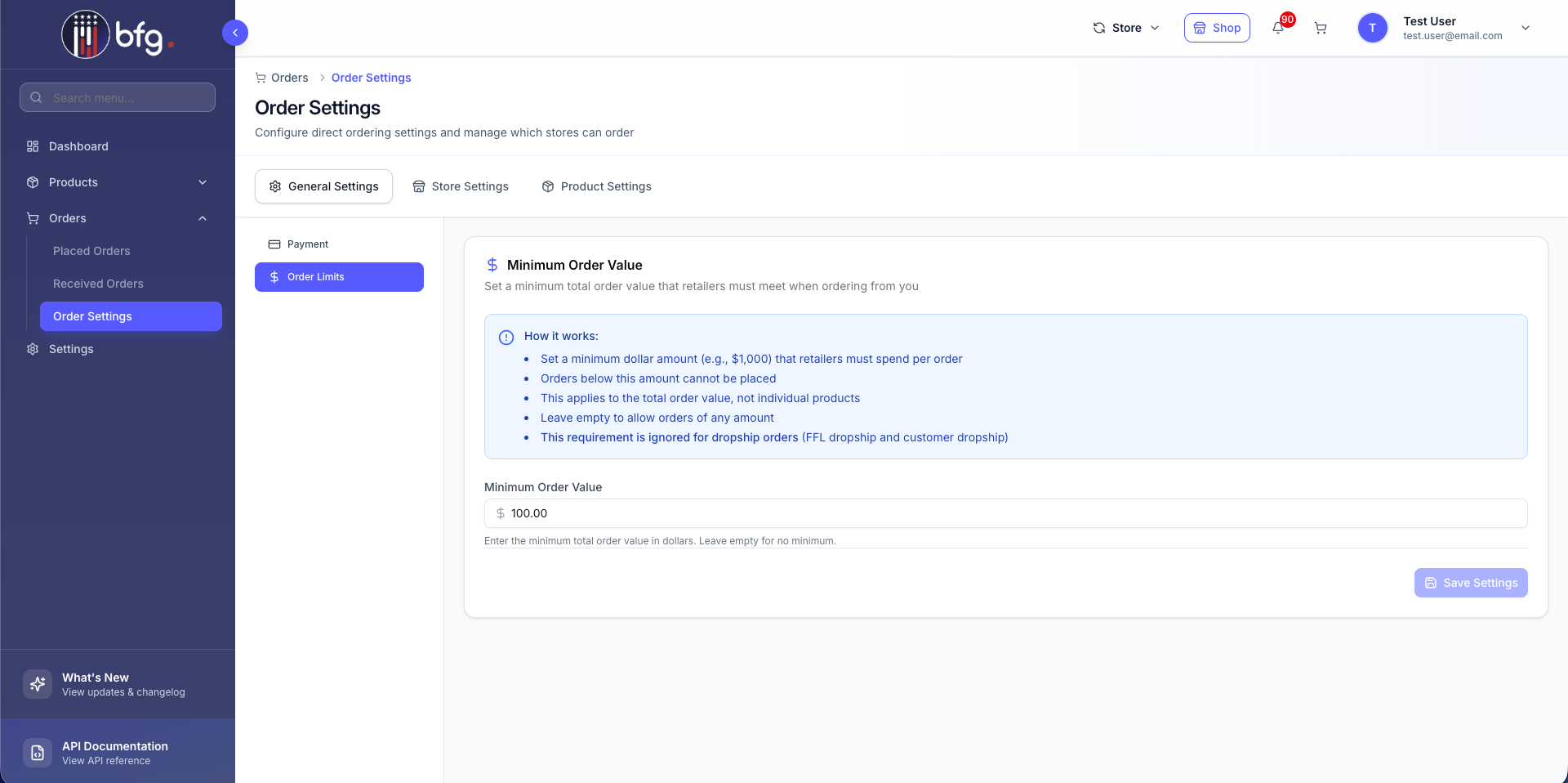 Retailers can now choose to sell their products on the BFG platform by completing the Direct Ordering Setup, including configuring shipping options, minimum order amounts, and order fulfillment rules.